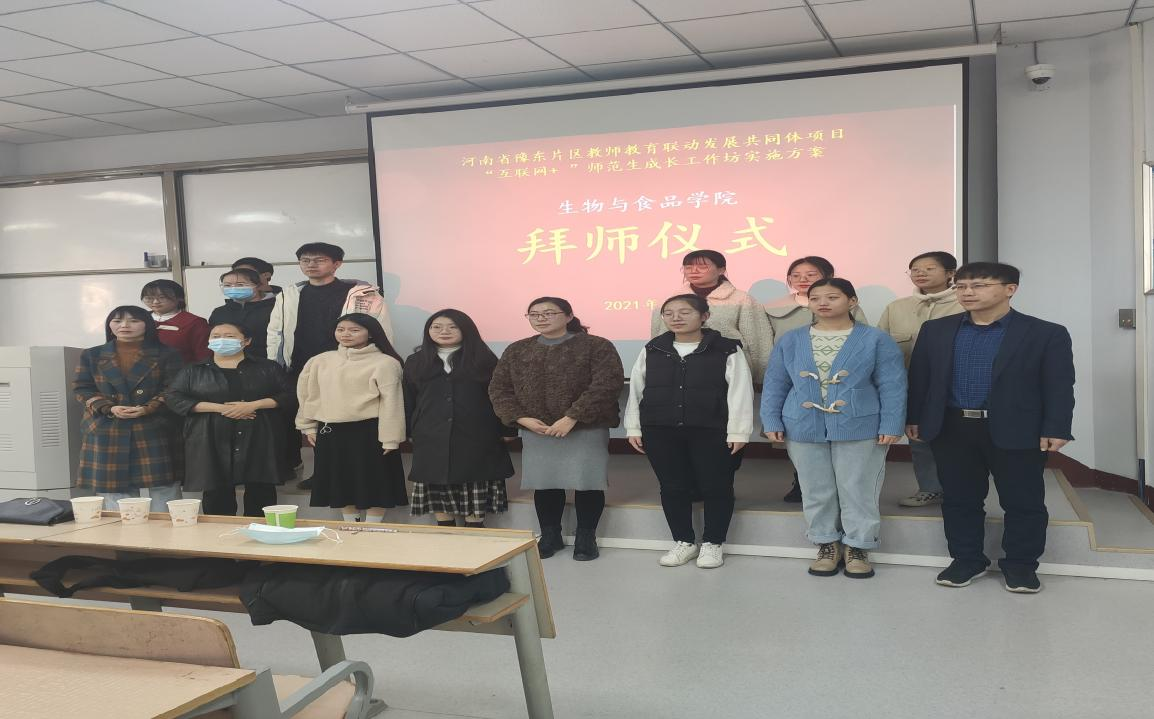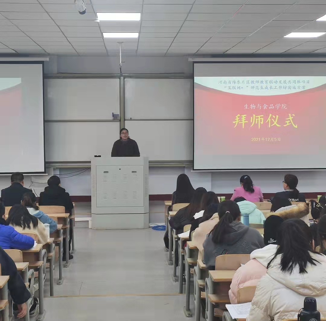 12月5日,河南省豫东片区教师教育联动发展共同体项目,2021年度“互联网+”师范生教学技能培养中学生物工作坊启动暨拜师仪式在商丘师范学院1号教学楼208举行。参加会议的有中学生物工作坊校内首席专家、77779193永利官网院长周庆峰,商丘市教体局基础教研室教研员张静和来自商丘市第一中学、商丘市第六中学、商丘市第八中学、商丘市实验中学、商丘市外国语中学的十名一线初中生物教师;参加会议的还有19级生物科学专业127名学生。本次会议由郝鹏老师主持。