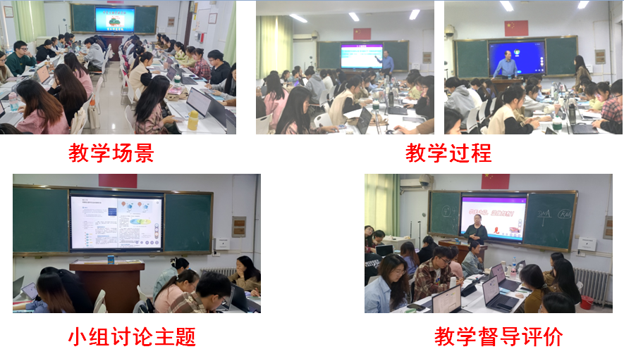 刘福林教授的教学过程突出以学生为中心的教学理念,突出了课程的高阶性、创新性与挑战度,采用新的教学场景与信息化的一体机辅助教学,采用线上线下互补的教学策略,课中流程分为六大教学环节。(1)复习提问,强调线上理论内容的重点与难点,为课中活动提供理论基础。(2)小组活动,以人教版高中生物学必修1第2章第5节《核酸是遗传信息的携带者》为例,组织合作学习小组讨论该课题的流程设计,突出了理论知识的实践应用。(3)提问检查,深度挖掘学生的思维问题与学习中的难点。(4)释疑解惑,引导学生创新思维的建立。(5)点评分析,进一步拔高学生的认识水平,树立远大理想,渗透思政内容。(6)结束新课,形成教学内容的闭环。