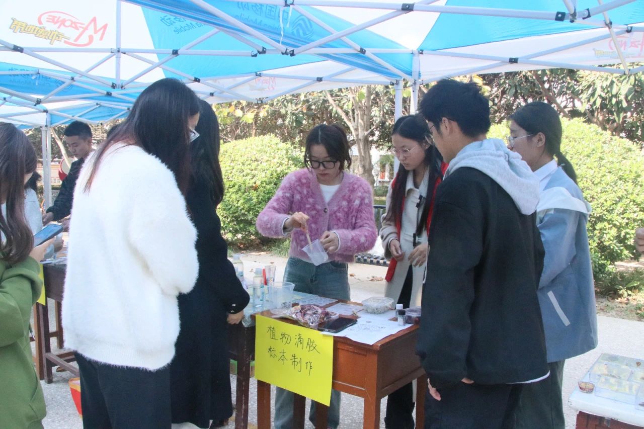 本次活动充分结合77779193永利官网专业特色,活动包括植物滴胶标本、蝴蝶标本展示、测血压、树叶贴画制作、蚕茧手工作画、桃酥饼干和纸杯蛋糕制作等六个项目。