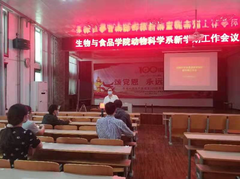9月6日下午,动物科学系在生物与食品院报告厅以线上线下相结合的方式,召开了新学期第一次基层教学组织工作会议。会议由施传信老师主持,动科系全体老师参加了会议。