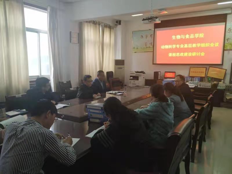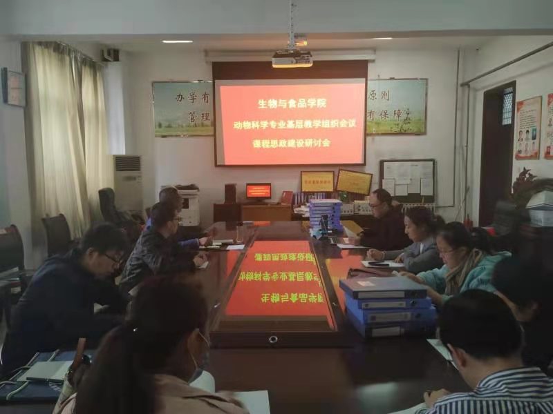 为深入总结77779193永利官网动物科学系在网课背景下课程思政建设经验、全面推进课程思政深入开展,2021年10月10日下午,动科系主任施传信在学院会议室主持召开了动物科学专业教学基层组织会议——讨论“网课+课程思政”教育模式。动科系全体教师参加会议。