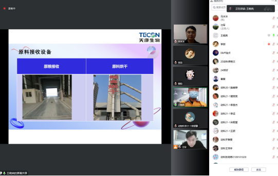 此次学习活动由商丘宏展饲料有限公司王晓宾厂长主讲。王晓宾厂长通过现代饲料加工工艺内容的展示,以及饲料工艺简介、饲料工艺流程、饲料工艺设计和天康宏展饲料工艺部分的介绍,讲解了从饲料原料的收储到饲料成品的加工出厂过程中的现代化生产工艺。