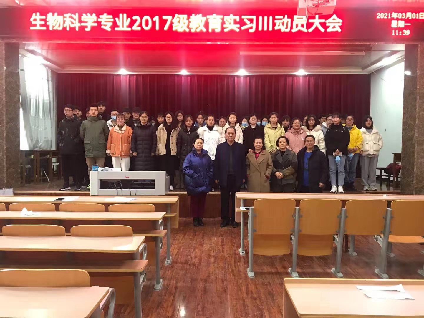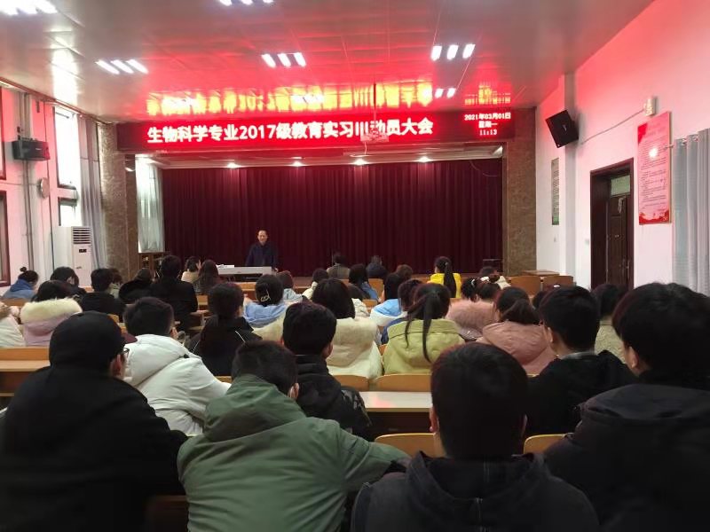 3月1日,开学的第一天,在院报告厅,生物科学系举办了生物科学专业2017级教育实习III动员大会。到会的有生物科学专业2017级全体学生及刘福林、康洁、王玉玲、张峰等校内指导教师,会议由系主任郑爱珍主持。
