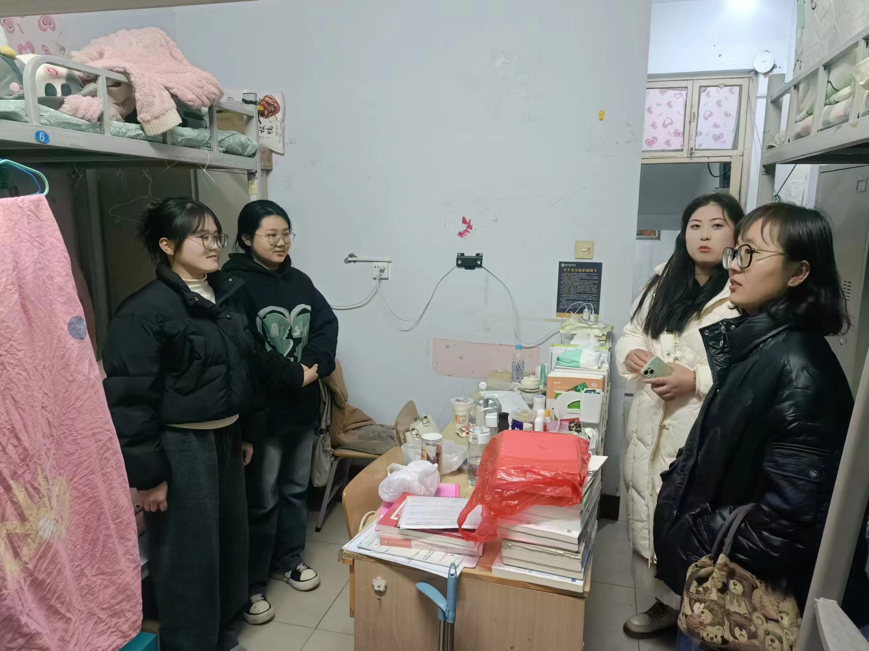 扣响寝室的大门,老师们热情地关心着每一位同学。走访过程中,辅导员深入了解同学们对自身专业的具体规划,勉励大家做好学习规划,调整好状态,以饱满的斗志投入新学期学习生活;同时叮嘱同学们注意宿舍卫生,多开窗,勤通风,与室友互帮互助,努力打造干净舒适、和谐有爱的宿舍环境。