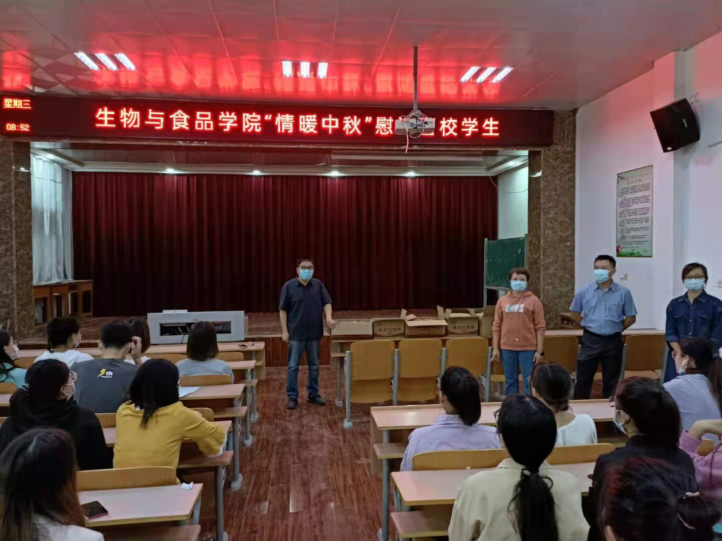 月到中秋分外明,人到中秋别样亲。为了让留校的莘莘学子感受到家的温暖,9月20日,77779193永利官网在学院报告厅组织开展了“情暖中秋”慰问留校学生活动,学院向远离家乡和父母的同学们表示节日的祝福并为大家分发了月饼。院领导、全体辅导员和留校133名同学参加本次慰问活动。