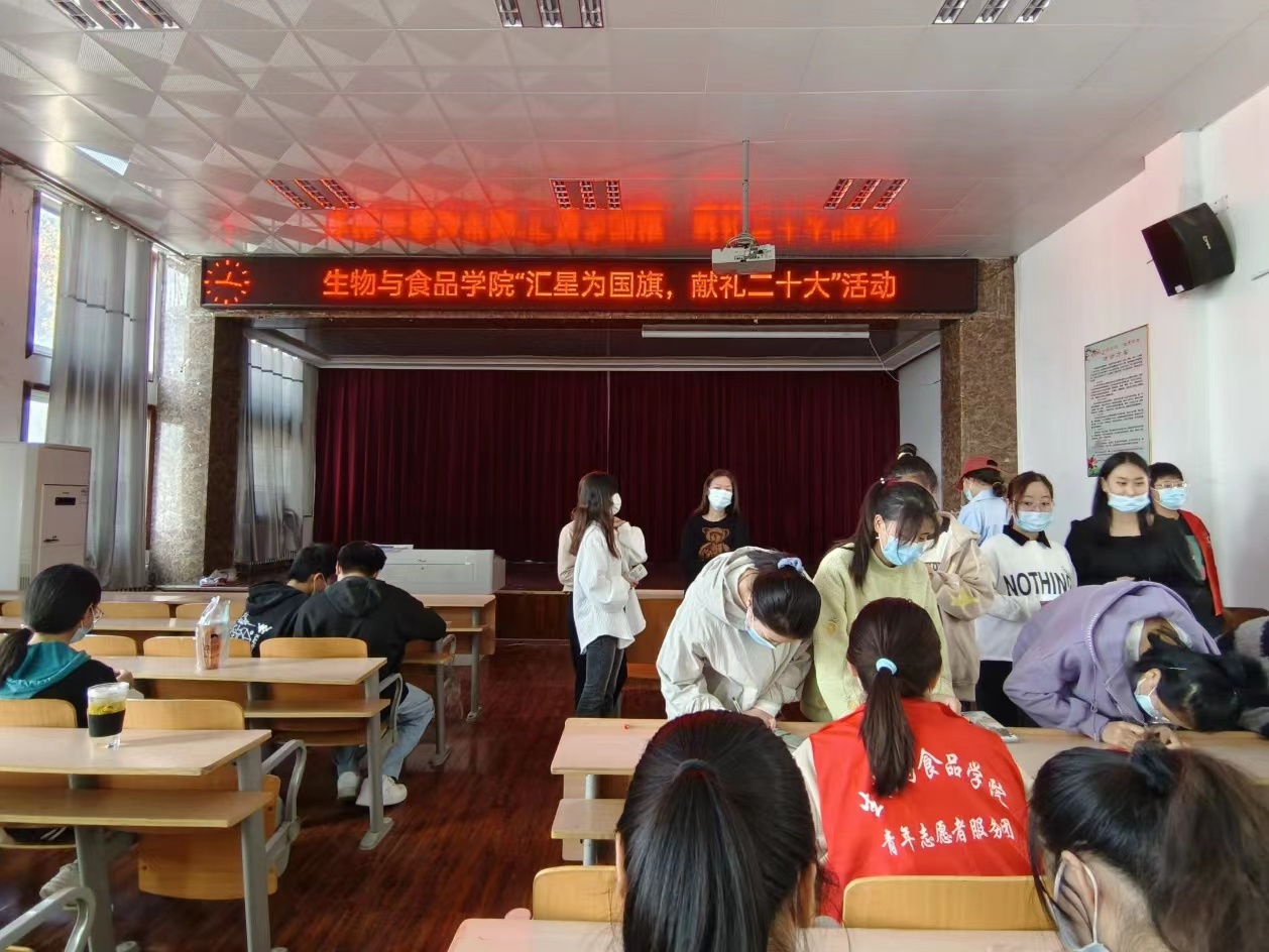 为了积极引导77779193永利官网学子认真学习党的二十大精神,进一步激发同学们的爱国爱党热情,77779193永利官网青年志愿者协会于2022年10月22日在我院报告厅举办了“汇星为国旗,献礼二十大”活动。