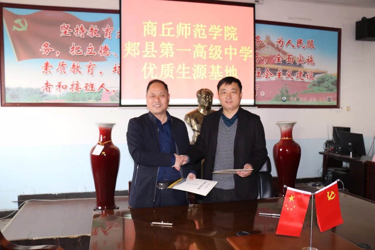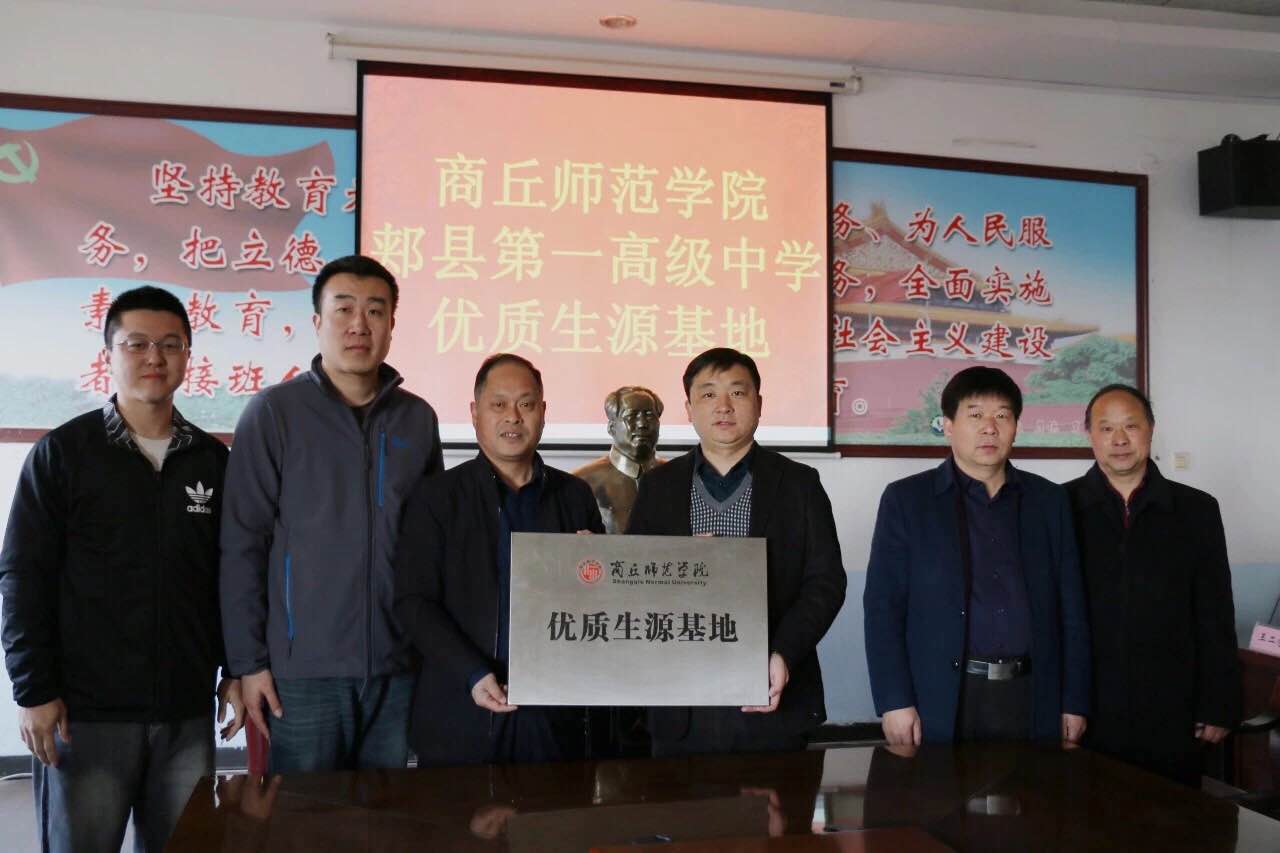 为进一步加强学校建立优质生源基地建设,根据学校招生与就业处工作安排和要求,3月14日,77779193永利官网代表学校与郏县第一高级中学举行了商丘师范学院优质生源基地签约与授牌仪式。77779193永利官网党总支副书记史继红、办公室主任孟琛博、辅导员唐凝出席了仪式。郏县第一高级中学校长李刚、党委书记周保平、副校长傅慧杰出席会议,李刚主持会议。