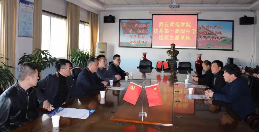 授牌仪式结束后,郏县第一高级中学副校长刘保红、办公室主任王兴举、教研室主任孙波作为商丘师范学院优秀校友代表与我校代表进行了亲切交流。