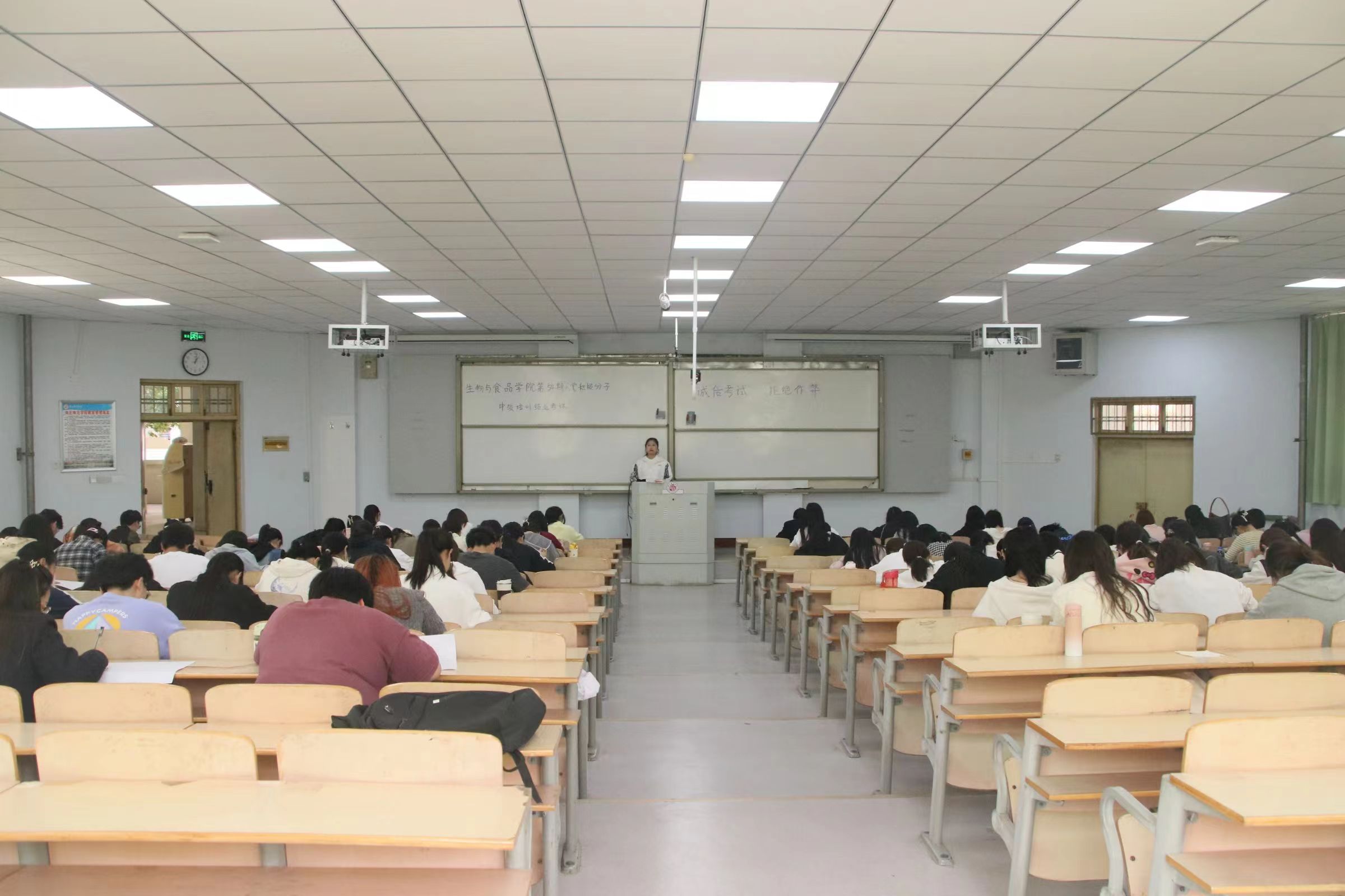4月17日,我院组织第54期入党积极分子在教学楼106进行中级结业培训考试,此次考试由我院党委副书记丁波莉、学工办主任张美芸、2021级辅导员丁蓓及入党积极分子朱怡静监考。本次考试采取闭卷的形式,考试内容包括《中国共产党章程》和党的二十大相关内容。监考老师丁蓓强调了考试纪律,确保考试的顺利进行。考试过程中,同学们以严肃认真的态度对待此次考试,严格遵守考试纪律和考试流程,认真作答。