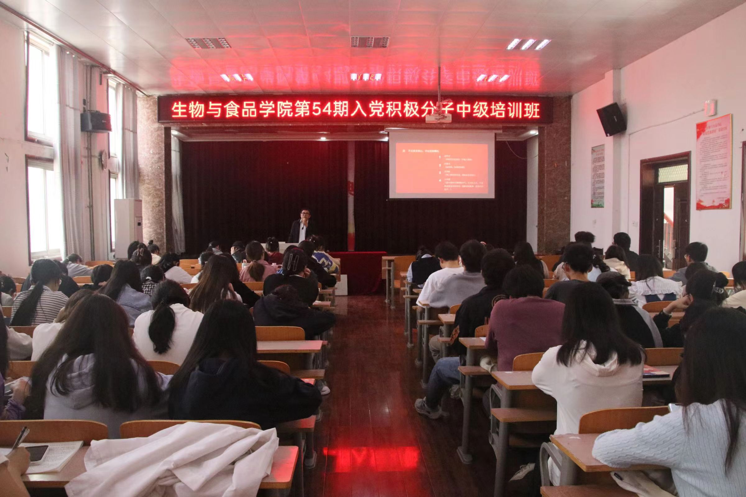 4月16日,我院党委书记朱震杰在我院报告厅为入党积极分子进行党课培训。他从三个方面向同学们提出要求,一是要不忘初心,牢记身份;二是要不忘党的初心,传承红色基因;三是不忘职责初心,牢记党的嘱托。由此端正了同学们的入党动机,让同学们明白了自己的职责和使命。