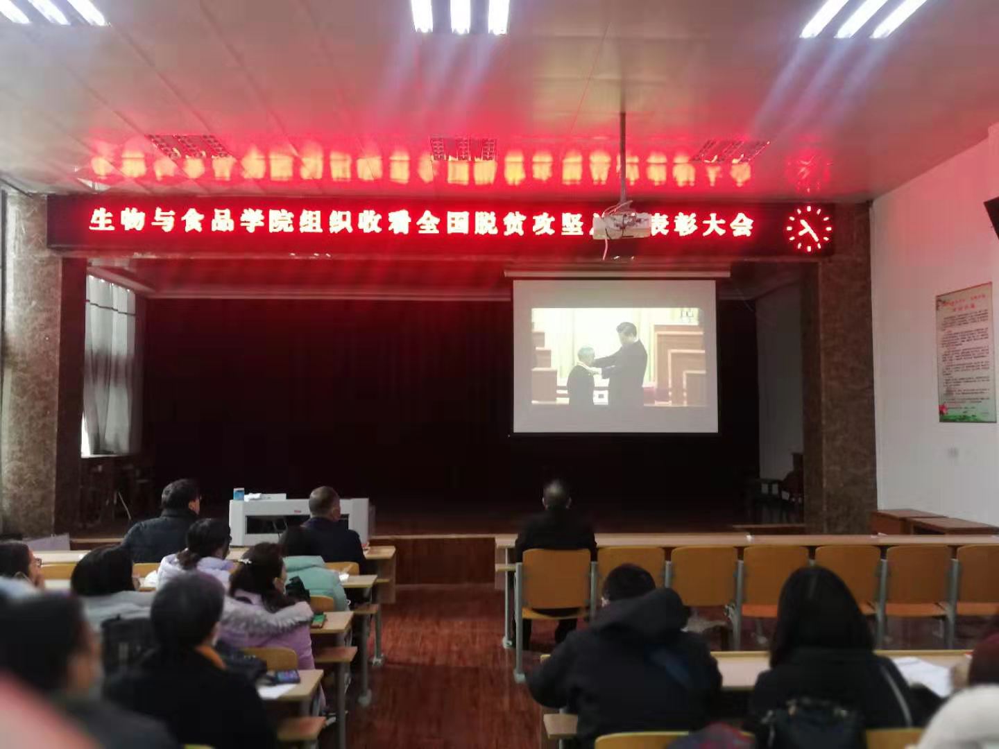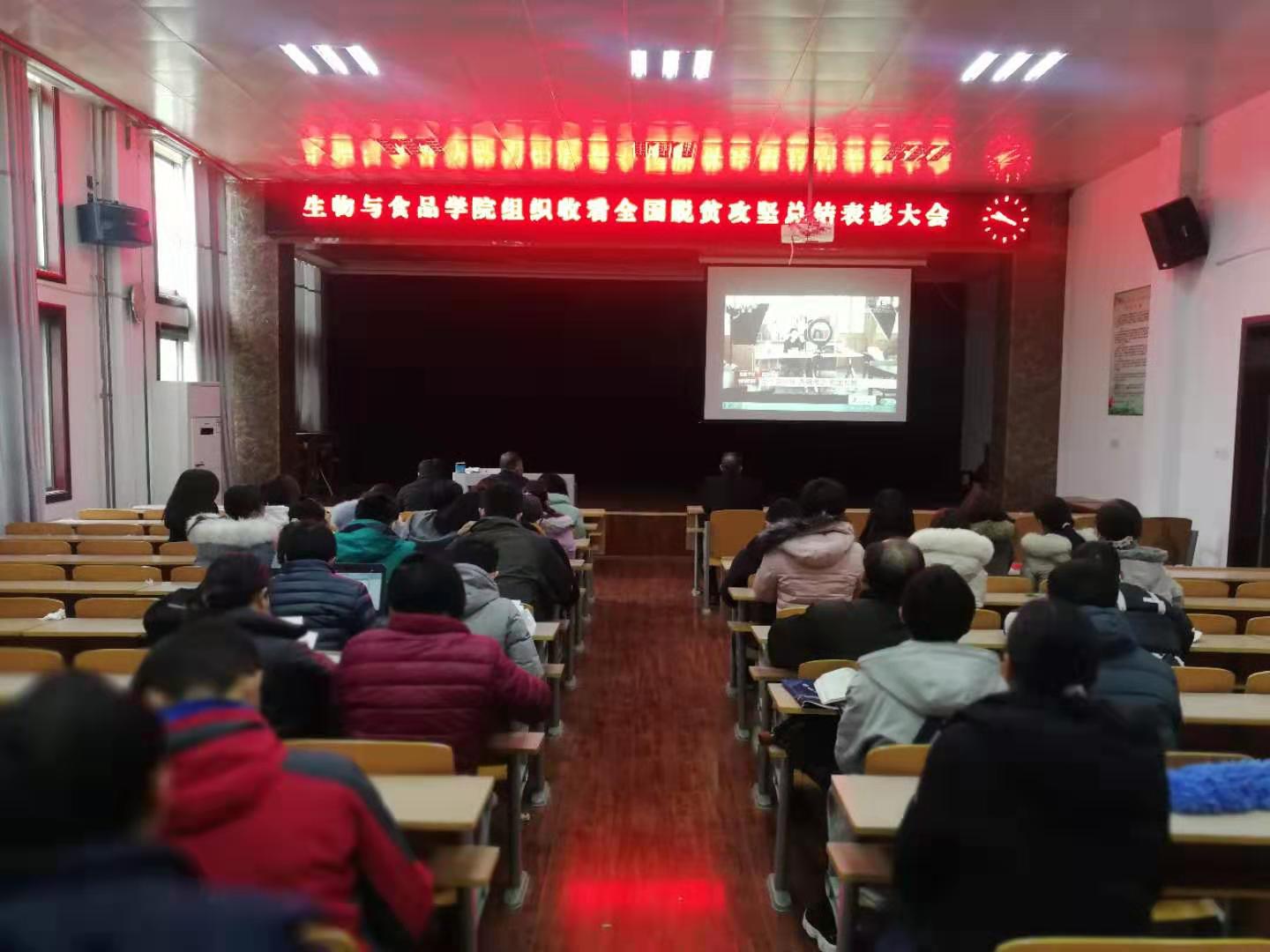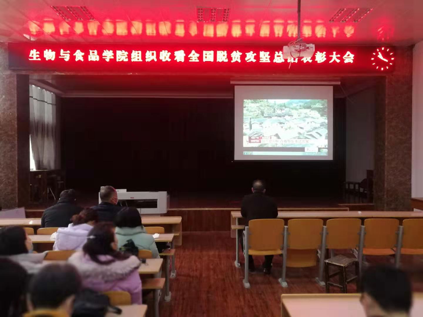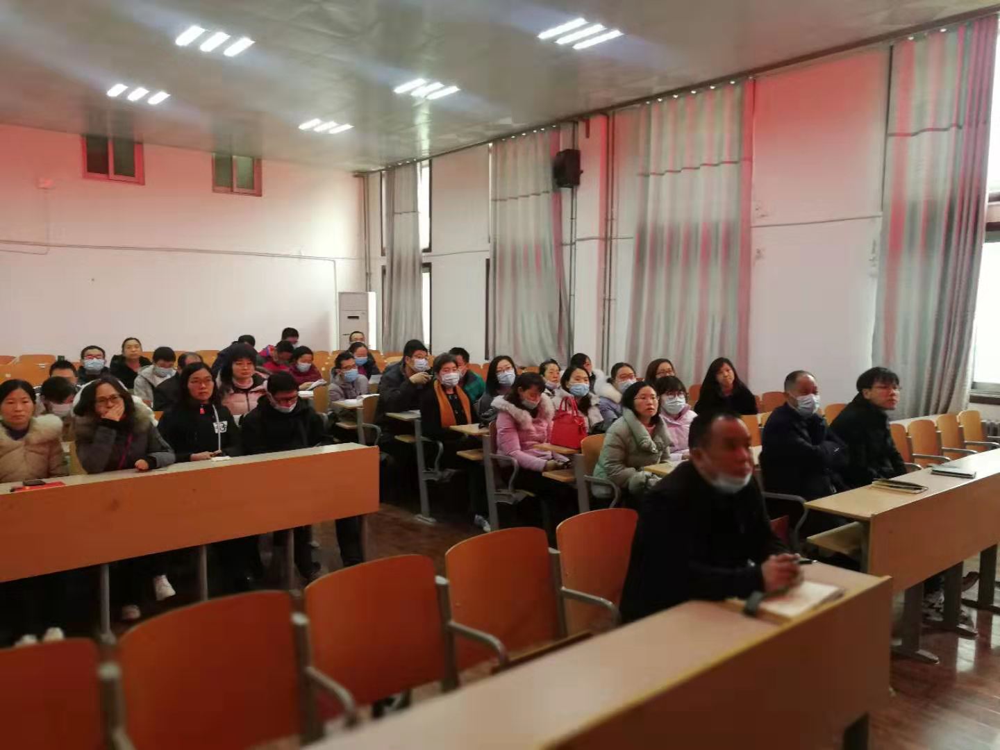 在做好疫情防控的前提下,学院组织全体职工在学院报告厅收看了大会实况直播。