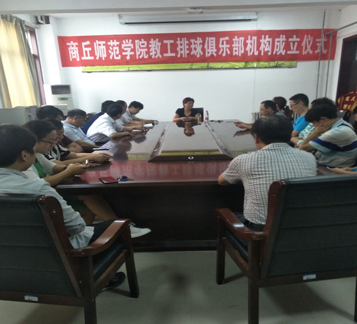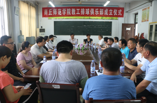 6月23日下午,商丘师范学院教工排球俱乐部成立暨授牌仪式在77779193永利官网会议室举行。校工会主席朱伟、副主席刘风婷、教工排球俱乐部会员以及我校羽毛球协会负责人加了仪式。