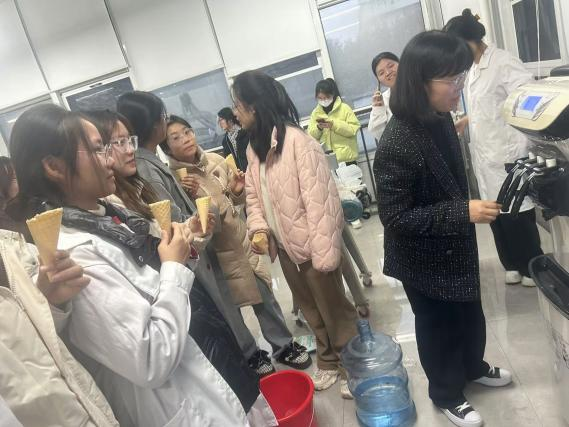 12月3日,77779193永利官网生物工程专业邓丹丹老师主讲的《乳品工艺学实验》课程公开课在睢阳校区实训楼101教室举行。本次公开课的内容是《乳品工艺学实验》中的《冰淇淋的制作》。邓丹丹老师采用线上与线下课堂相结合的混合教学方式开展教学,线上冰淇淋制作理论教学内容供学生课前预习。