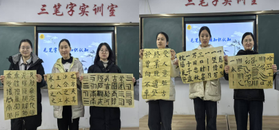 同学们书写作品展示。课后,郑爱珍主任对本节课堂教学给予评价,认可李敏老师教学设计体现了以学生为中心的教学理念,同时,郑爱珍主任也结合自己的教学实践经验,针对部分教学环节和教学技能提出了意见,并对学生提出殷切期望,并提出了宝贵意见。